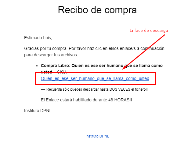Recibirás un correo con el link de la descarga. Recuerda que tienes un número determinado de veces para descargar el fichero.
